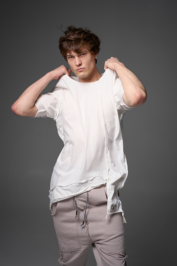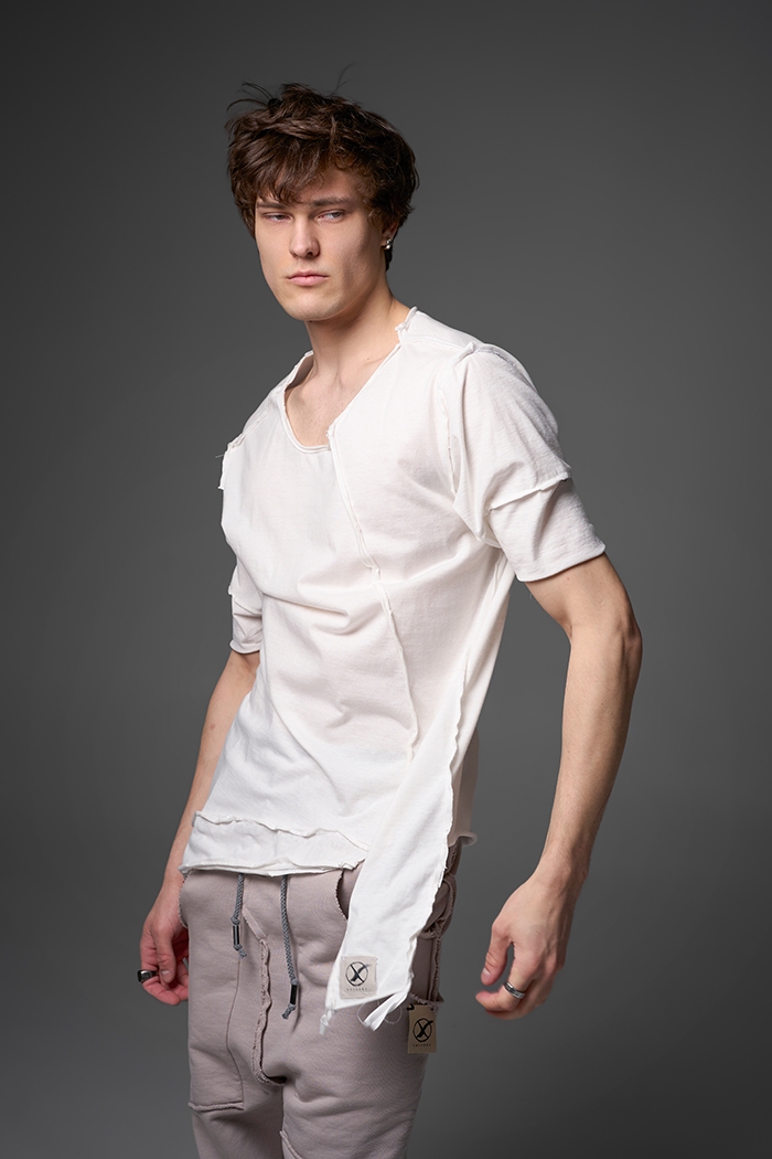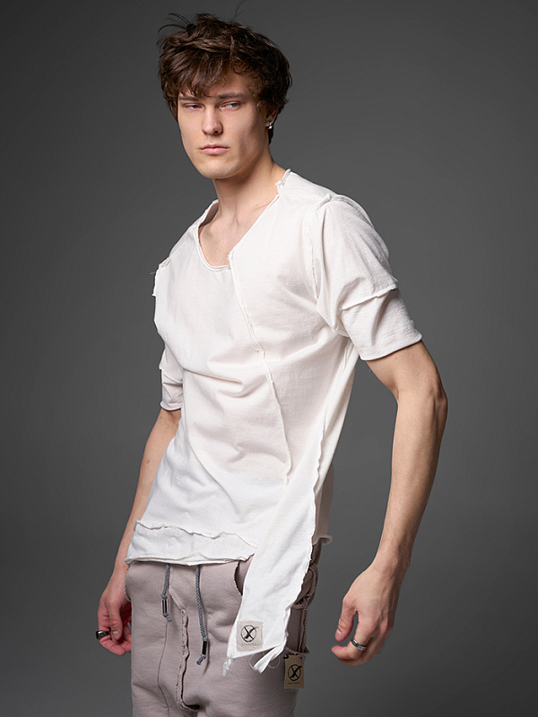Хлю говорящий о философии бытия , своим совместным проживанием на теле хозяина , нет это не паразит , это...друг. Молчаливый, хлопковый собеседник , который всегда выслушает даже разговоры о душераздирающем полиэстер , который запрещен практически везде во вселенной кроме этой отсталой планетки . Его философия бытия проста: "Я существую, пока меня носят. И пока я не расползся окончательно буду жить и спасать галактику от вторжения модников". Гигантское лого – это крик в пустоту: "Я ЗДЕСЬ! (Но кто ответит?)". Рваные края – не раны, а шрамы совместных приключений: битвы с рисинкой на диване, падением на ультраскорости с самоката. Он впитывает ваш пот – ваши сомнения. Он мнется – отражая смятение вашей души. Он друг. Он напоминает, что все когда-нибудь износится и он и вы и эта реальность . Носите с уважением. И стирайте при 30°. Высокие температуры делают его циничным