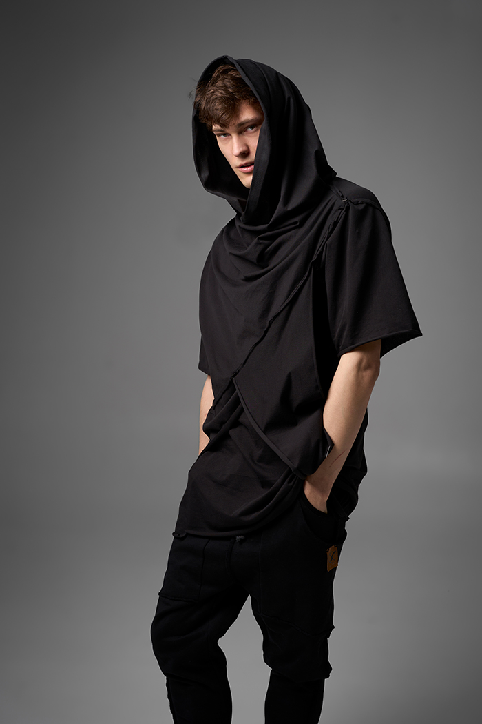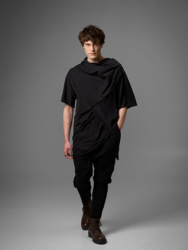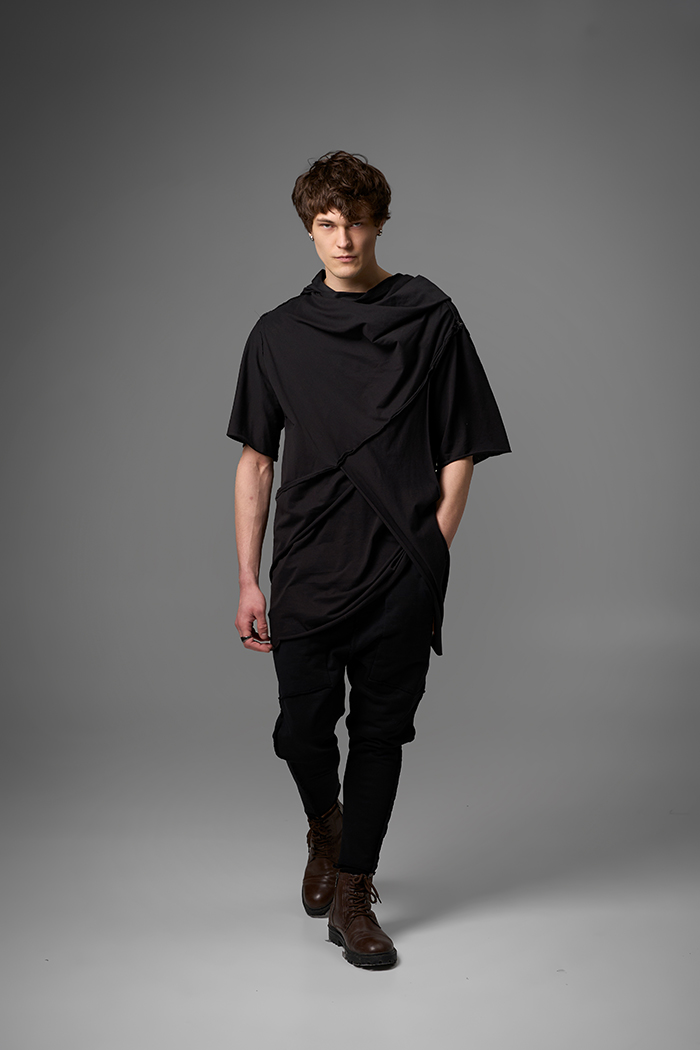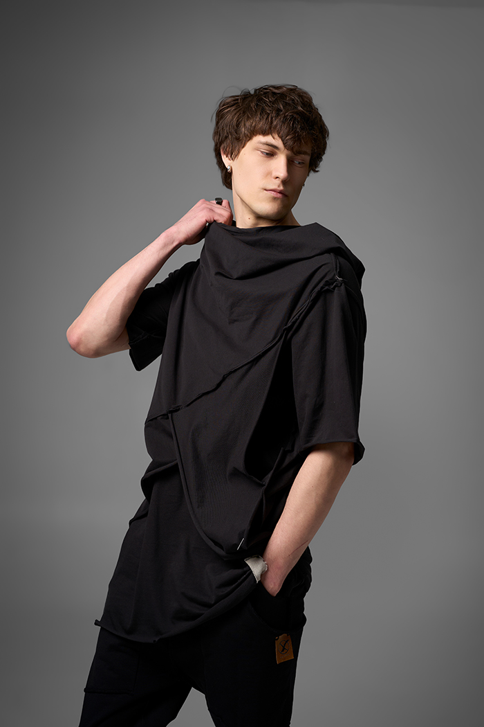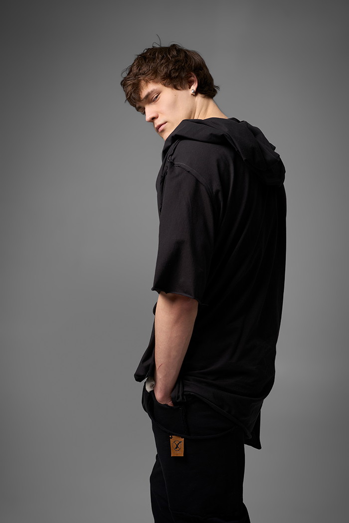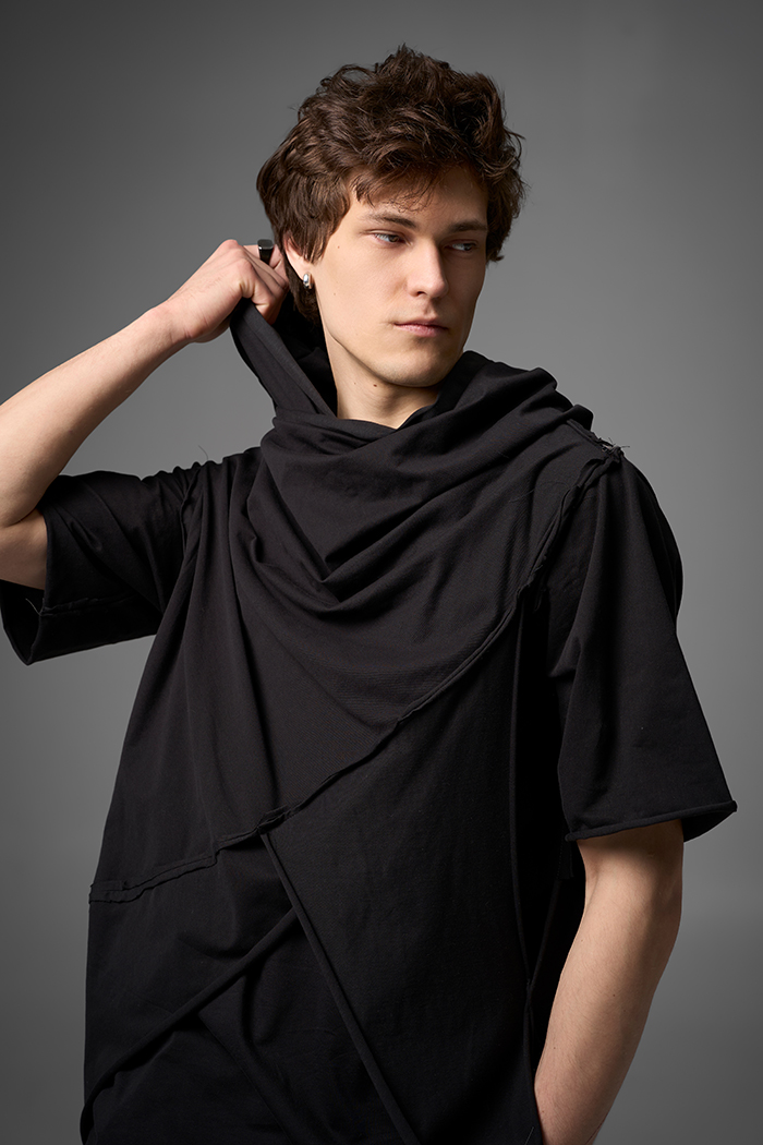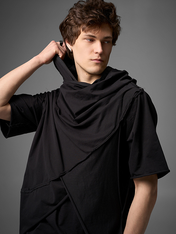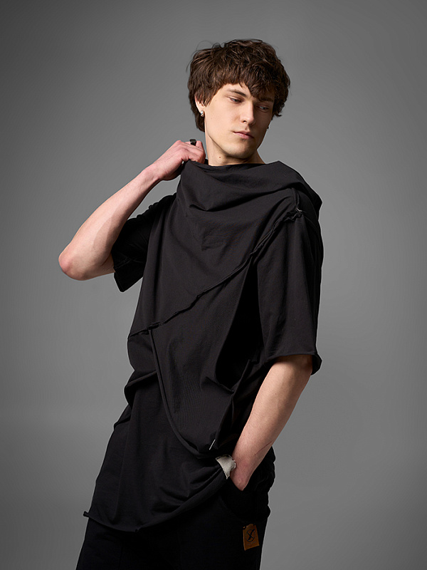 Хлю говорящий о философии бытия , своим совместным проживанием на теле хозяина , нет это не паразит , это...друг. Молчаливый, хлопковый собеседник , который всегда выслушает даже разговоры о душераздирающем полиэстер , который запрещен практически везде во вселенной кроме этой отсталой планетки . Его философия бытия проста: "Я существую, пока меня носят. И пока я не расползся окончательно буду жить и спасать галактику от вторжения модников". Гигантское лого – это крик в пустоту: "Я ЗДЕСЬ! (Но кто ответит?)". Рваные края – не раны, а шрамы совместных приключений: битвы с рисинкой на диване, падением на ультраскорости с самоката. Он впитывает ваш пот – ваши сомнения. Он мнется – отражая смятение вашей души. Он друг. Он напоминает, что все когда-нибудь износится и он и вы и эта реальность . Носите с уважением. И стирайте при 30°. Высокие температуры делают его циничным