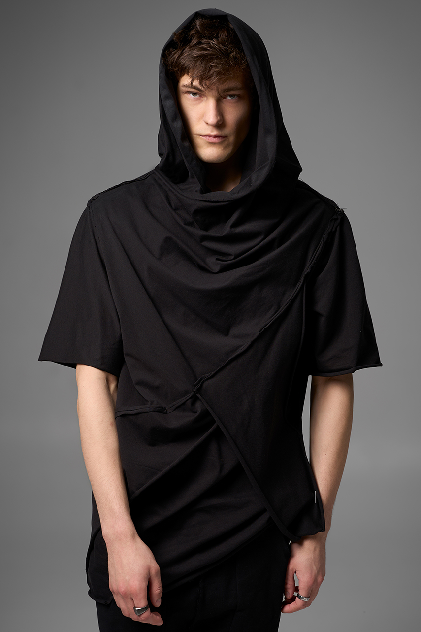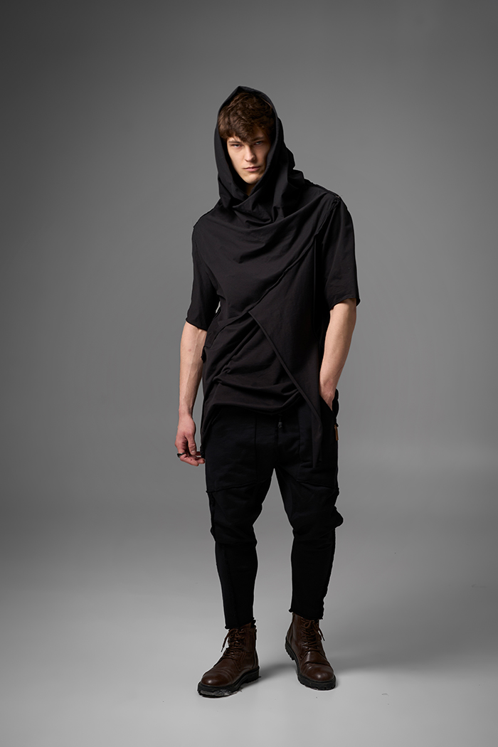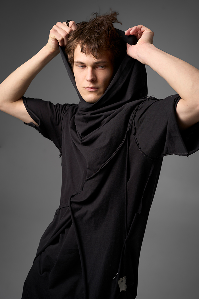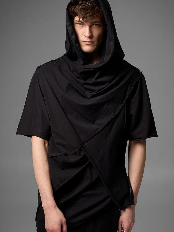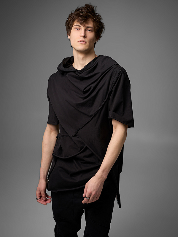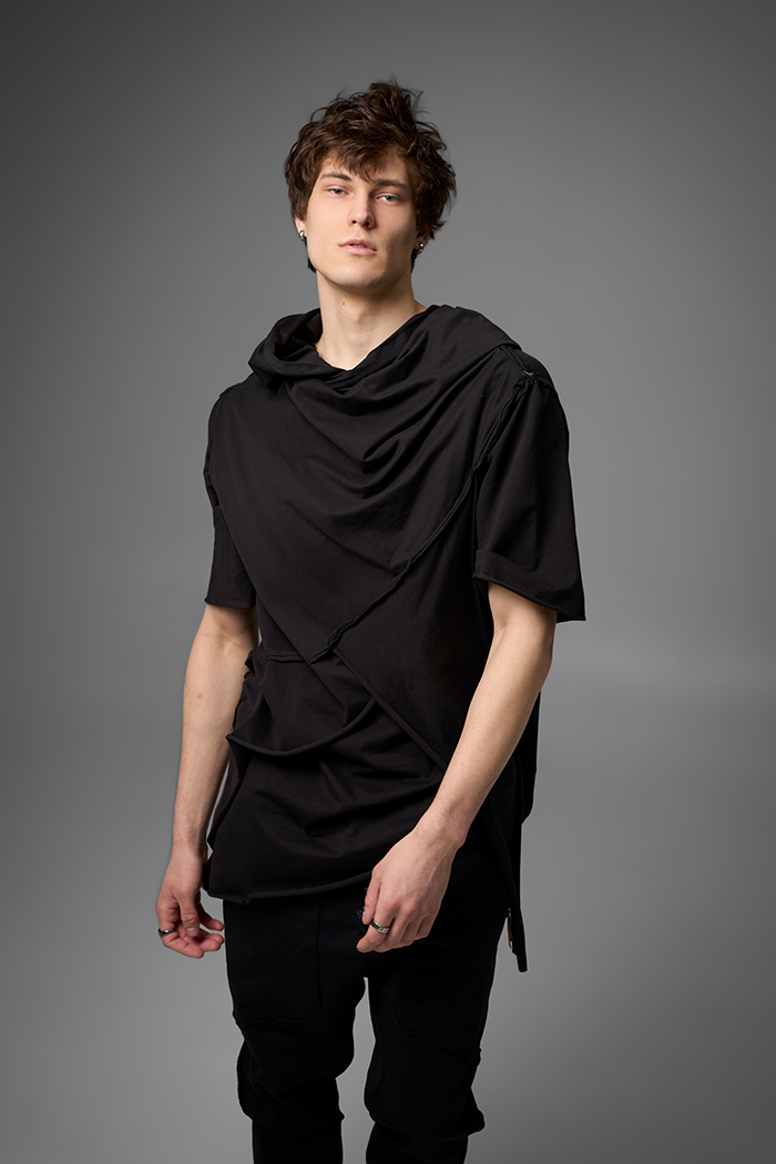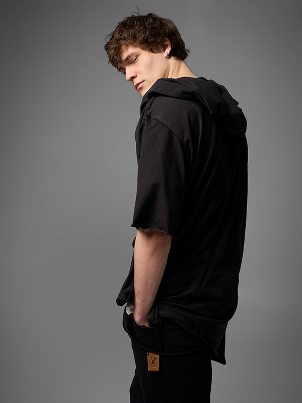 Хлю говорящий о философии бытия , своим совместным проживанием на теле хозяина , нет это не паразит , это...друг. Молчаливый, хлопковый собеседник , который всегда выслушает даже разговоры о душераздирающем полиэстер , который запрещен практически везде во вселенной кроме этой отсталой планетки . Его философия бытия проста: "Я существую, пока меня носят. И пока я не расползся окончательно буду жить и спасать галактику от вторжения модников". Гигантское лого – это крик в пустоту: "Я ЗДЕСЬ! (Но кто ответит?)". Рваные края – не раны, а шрамы совместных приключений: битвы с рисинкой на диване, падением на ультраскорости с самоката. Он впитывает ваш пот – ваши сомнения. Он мнется – отражая смятение вашей души. Он друг. Он напоминает, что все когда-нибудь износится и он и вы и эта реальность . Носите с уважением. И стирайте при 30°. Высокие температуры делают его циничным